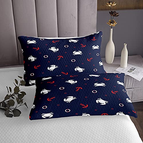 Set di trapunta con ancora e ragazzi, con copriletto trapuntato in microfibra blu scuro e oceano nautico trapuntato, per e marini