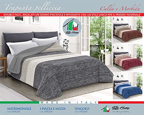 Tata Home Trapunta Coperta Piumone Invernale Caldissimo imbottito 570 gr/mq in Pile Vellutato 3D e Agnellato Sherpa Letto Singolo 1 Piazza 170x260 cm Made in Italy Colore Blu Azzurro