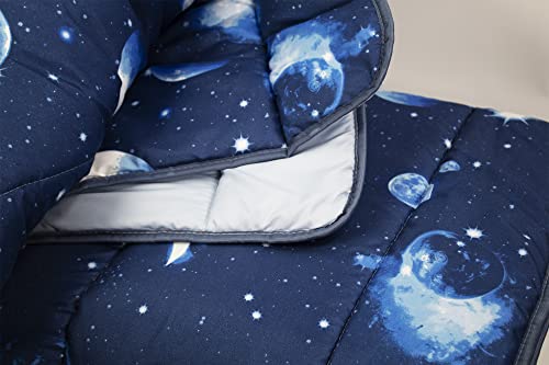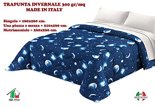 Tata Home Trapunta Invernale Piazza Mezza Imbottita 300 gr/mq Piumone Caldo 210x260 cm Fantasia Pianeti Stelle Luna Made in Italy Mod. Universo Colore Blu Notte