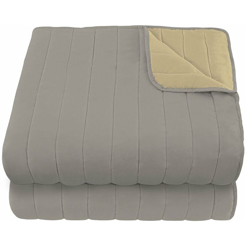 Trapuntino Trapuntino Double Face 1 Piazza e Mezzo 100gr in Microfibra Panna/Grigio Chiaro Trapuntino estivo trapuntato bicolore, doubleface con imbottitura 100 grammi. Articolo Made in Italy con certificazione Oeko Tex che garantisce il rispetto per la natura e la totale assenza di sostanze nocive durante l'intero processo produttivo. Caratteristiche Tecniche Tessuto: microfibra "mano pesca" anallergica e antiacaro Imbottitura interna: 100 gr Prodotto: studiato, assemblato e cucito interamente in ITALIA Lavaggio in lavatrice a 40 gradi, non candeggiare, non stirare, non pulire a secco, non utilizzare l'asciugatrice Dimensioni Trapuntino Singolo: 170x270 cm 1 Piazza e Mezzo: 220x270 cm Matrimoniale: 260x270 cm