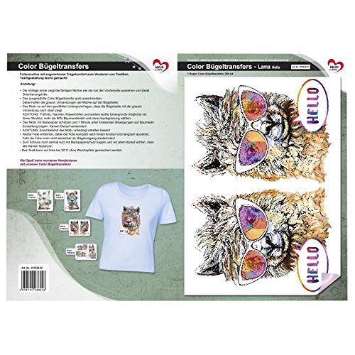 Trasferibile a Caldo | Trasferibile per Stirare | Termoadesivo applicabile con Ferro da Stiro | per Decorare Tessuti Come Magliette, Borse, federe | Motivo: Lama Hello, Occhiali da Sole