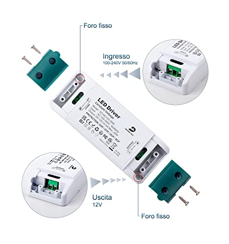 【Avviso】 La potenza combinata delle luci a LED collegate non deve superare i 30 watt. Mantenere il carico a meno dell'85% della capacità dell'alimentatore led 12v 30w è una pratica comune per prolungarne la durata.