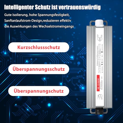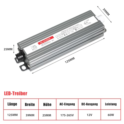 Trasformatore 12v 60w, trasformatore 220v 12v ac 5a, trasformatore led 12v, alimentatore led 12v 60w, Nessun rumore/nessun sfarfallio del adatto per strisce LED e lampadine