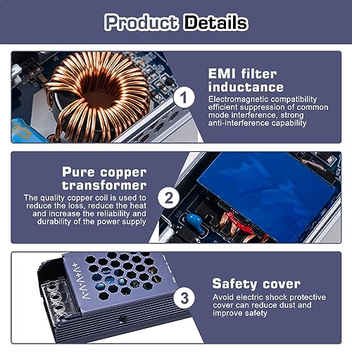 Caratteristiche: il design ultra sottile a nido d'ape dell'alimentatore dissipa scientificamente il calore e aiuta i componenti elettronici a dissipare il calore. Nessuna interferenza radio, nessun carico minimo, nessuno sfarfallio, nessun rumore (nessuna ventola).