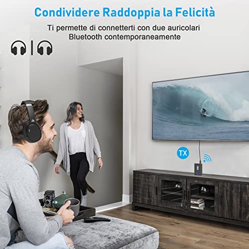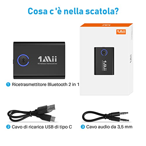 [aptX Low Latency/aptX HD] Con la tecnologia aptX Low Latency e aptX HD, il trasmettitore audio Bluetooth 1Mii è l'ideale per guardare la TV senza ritardi. ***Nota: per non avere ritardi, le cuffie devono supportare anche Aptx LL.