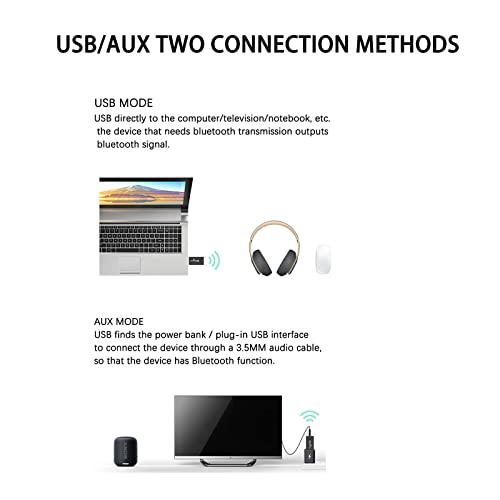 【Ampiamente Compatibile】 il trasmettitore Bluetooth ha la modalità USB e la modalità AUX, che è più flessibile e adatta a più dispositivi e scenari.