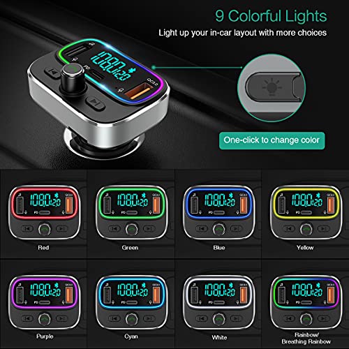 ORIA Trasmettitore FM Bluetooth 5.0 con Doppio Microfono,18W Type-C PD + QC 3.0, Adattatore Radio Wireless Bluetooth con Siri Google Assistant, Chiamate in Vivavoce, Disco USB/scheda TF