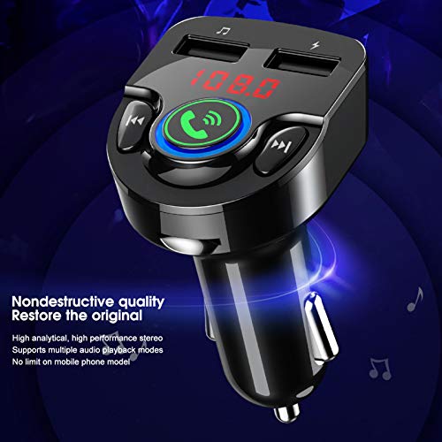 Trasmettitore FM Bluetooth per auto, kit per auto con lettore musicale adattatore audio Bluetooth wireless con caricatore per auto a 2 porte USB, vivavoce Bluetooth