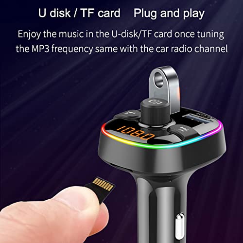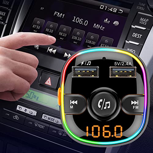 Trasmettitore Bluetooth per Auto, LncBoc LncBoc 7 Colori Bluetooth 5.0 Car FM Trasmettitore con Chiamata a Mani Libere, Caricatore USB Doppio 5V / 2.4A e 1A, Supporto TF Card/U Disk