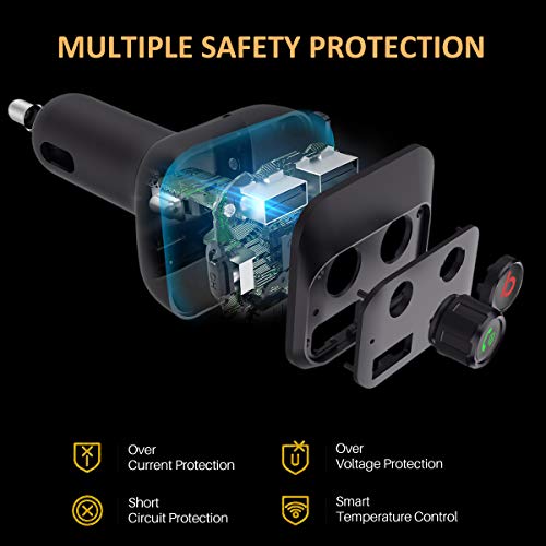 Caricabatteria da auto con doppia porta USB: il trasmettitore vivavoce per auto supporta la ricarica di due dispositivi alla volta, che è 3,4 A insieme. Il trasmettitore FM con chip intelligente integrato (carica IC) divide la tensione in base alla necessità del dispositivo automaticamente.