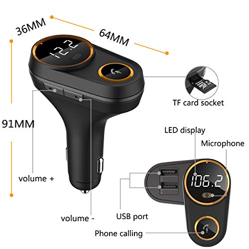 Trasmettitore FM Bluetooth, FM Trasmettitore per Auto Radio chiamate in Vivavoce, Scheda TF, due porte USB(5V/2.4A), design girevole - Achort