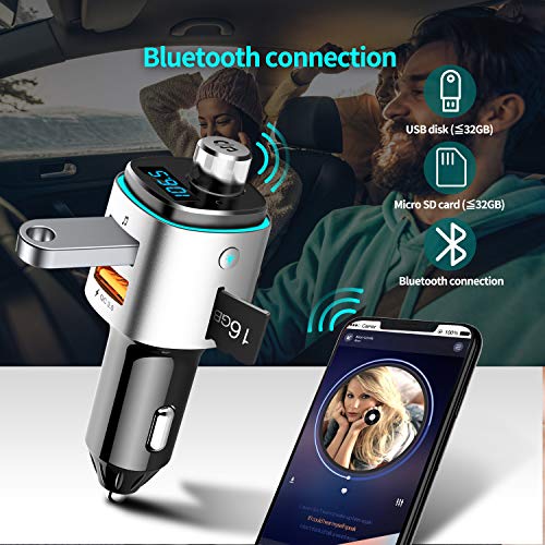 Trasmettitore FM Bluetooth Auto, Ricarica Veloce 3.0 con Doppia Porta USB Display LCD, Supporta Chiamate Vivavoce Funzione di Memoria, Scheda TF, per IOS/Android