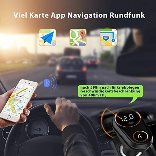 Funzione di navigazione gratuita & GPS - con microfono integrato e vivavoce, il nostro trasmettitore Bluetooth offre un modo sicuro per rispondere, posizionare/rifiutare una chiamata, riproduzione/pausa musica durante la guida dopo il collegamento di Bluetooth. Può essere collegato anche all'app di navigazione del telefono e utilizzato come GPS Navigation Audio mobile.