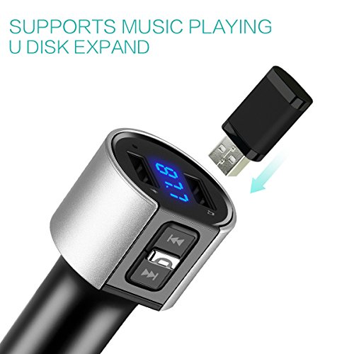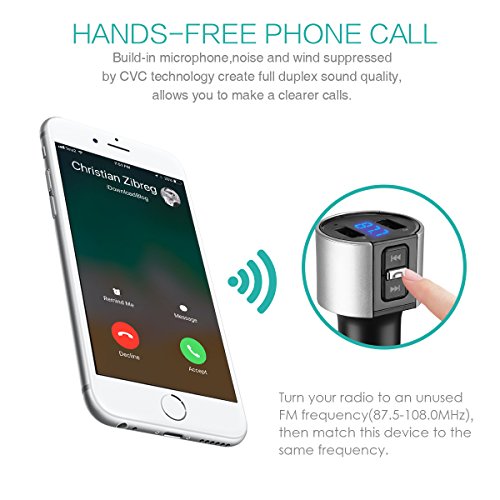 Oria, trasmettitore FM e lettore MP3 Bluetooth per auto, kit vivavoce, adattatore radio wireless con doppia porta USB da 5 V/2,4 A e 1 A, slot per scheda TF, caricatore per smartphone