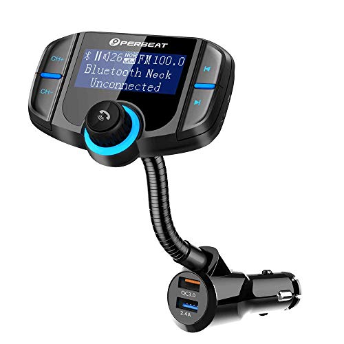 Trasmettitore FM, Perbeat kit vivavoce per auto Bluetooth, lettore MP3 trasmettitore FM wireless radio audio compatibile con caricatore doppio USB, display LCD da 4,3 cm, 3.5 mm, porta AUX, TF SD Slot