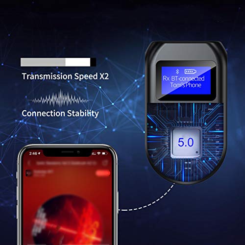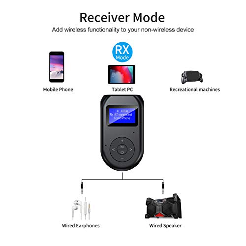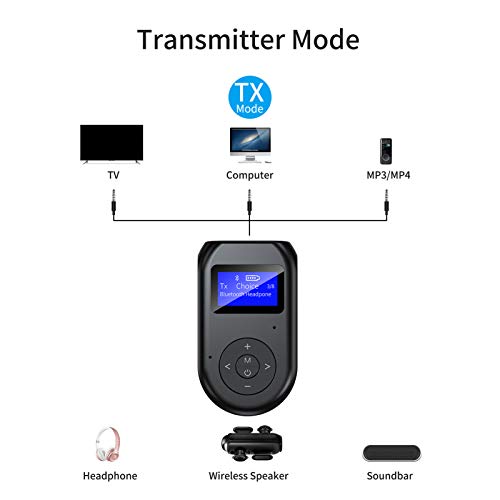 Trasmettitore e ricevitore Bluetooth 5.0, ricevitore Bluetooth per stereo domestico, adattatore wireless da 3,5 mm 2 in 1, adattatore Bluetooth 5.0 LCD stereo AUX 2 in 1