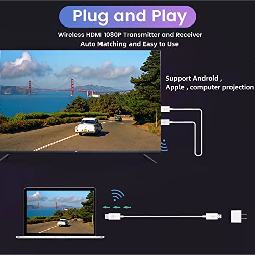 【Ampia compatibilità】 Leggero e facile da trasportare, l'estensore HDMI wireless soddisfa le esigenze di riunioni in ufficio, home video e condivisione audio. Il trasmettitore supporta tutti i laptop, adatto per lo streaming Windows/Mac OS/Neflix/TikTok/YouTube, ecc. non c'è quasi nessun ritardo e la connessione verrà collegata correttamente in meno di un minuto.