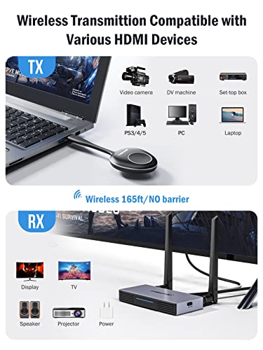 Trasmettitore e Ricevitore HDMI Wireless, Lemorele Kit di Estensione HDMI Wireless 165FT/50M 5G Streaming Video/Audio/File per Laptop, Fotocamera, Sky Q, ATEM a Monitor, Proiettore, HDTV