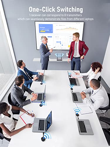 【1 RX a 8 TX】: 1 ricevitore può essere accoppiato con 8 trasmettitori, che possono visualizzare facilmente file da diversi laptop, la funzione di commutazione con un clic significa che non ci sono cavi in movimento o disordinati. Ultim