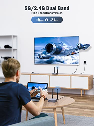 Distanza di trasmissione fino a 200 m: questo trasmettitore e ricevitore wireless HDMI è dotato di una funzione AP che può rafforzare il segnale di trasmissione e la sua stabilità. Insieme alla funzione dual band 5G/2,4G, la distanza di trasmissione di questo extender HDMI wireless è fino a 656 piedi/200 m in campo aperto. È importante sottolineare che il segnale è ancora forte e stabile, senza ritardi e ritardi quando passa attraverso i muri la migliore esperienza di utilizzo.