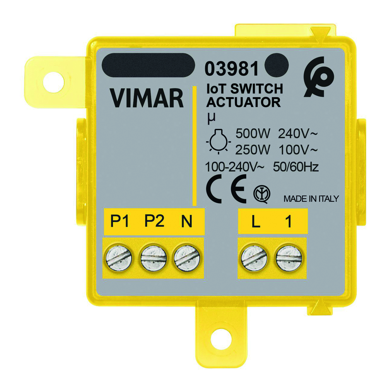 Apparecchio di comando elettronico IoT con uscita a relè NO 100-240 V 50/60 Hz per lampade ad incandescenza 500 W, lampade LED 100W, trasformatori elettronici 250 VA, lampade fluorescenti 120 W,. Controllo da remoto, 1 ingresso per comando filare per richiamare uno scenario, doppia tecnologia IoT su standard Bluetooth 5.0 per realizzazione sistema mesh VIEW Wireless e su standard Zigbee 3.0, alimentazione 100-240 V 50/60 Hz, installazione da incasso (retrofrutto). Se pilotati direttamente dai comandi senza batteria, non è necessario il cablaggio con pulsanti elettromeccanici. Configurazione da App View Wireless per sistema Bluetooth technology e App Amazon per Zigbee technology