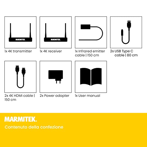 Trasmettitore HDMI Wireless 4K - WHE4 - 4K60 - Wireless - Ultra HD - Guarda la TV in un Altro Posto Senza Cavi - Portata di 50 m - Supporto per tastiera e mouse USB - Ricevitore multiplo possibile