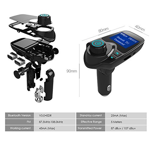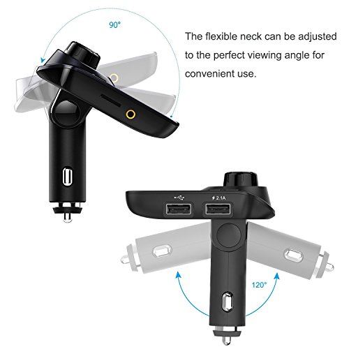 Trasmettitori FM,Amytech FM Transmitter Wireless Portatile Stereo Musica Vivavoce Chiamata con Due Porte USB Ricarica Compatibile con TF Carta U Disk Auto Car Kit con 3.5mm Porta Audio MP3 MP4 Tablet Portatile Trasmettitori FM