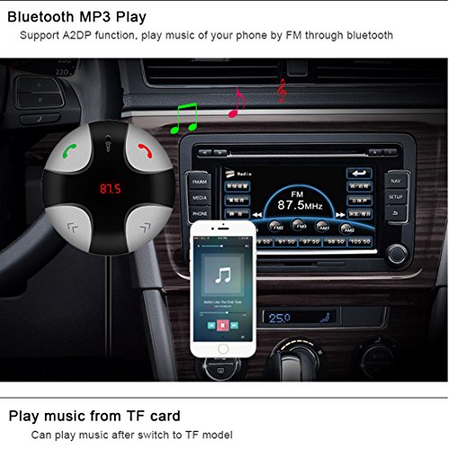 Trasmettitori FM,Upintek Car Hands-Free Kit Bluetooth trasmettitori radio senza fili Bluetooth Trasmettitore FM con slot per TF card LCD Display 2-Port USB Charger auto microfono integrato