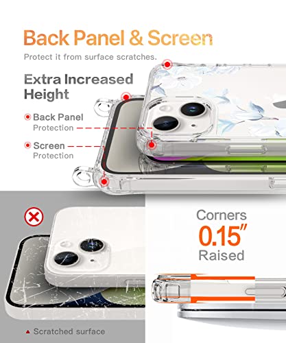UYMO Trasparente Cover con cordino per iPhone 14 6.1" - con 2 Pezzi Vetro Temperato e Pellicola Fotocamera protettiva,Custodia con Laccio Collana Tracolla Regolabile catena Case,Ibisco-Rosa oro