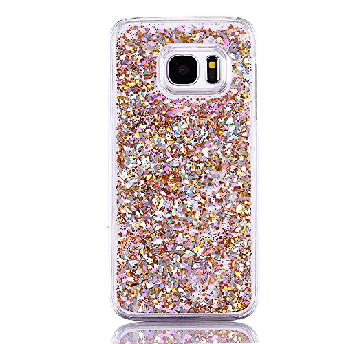 Trasparente Protettiva Custodia per Samsung Galaxy S7 5.1", CLTPY Brillantini Resistente ai Graffi Anti Scivolo Posteriore Case con Disegni Intarsiato Marvel Belle Colorato Lusso Floating Luccichio Lustrino Caso per Galaxy G930F + 1x Stilo - Argento & Oro