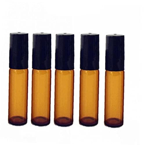 5pcs 5ml Trasparente Rotolo di Vetro Ambrato su Bottiglia con Palla di Metallo Sottile Roller di Vetro di Vetro Essenziali Fiale