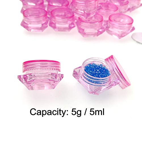 JZK 40 x 5g 5ml Trasparenti rosa piccoli vasetti scatoline plastica contenitori vuoti da viaggio per campioni cosmetici per crema trucco, balsamo labbra, lozione, polvere glitterata