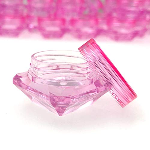 Confezione contiene: 40 x a forma di diamante rosa trasparenti 5 ml contenitori per campioncini cosmetici con coperchi in plastica + 10 x mini spatola + 140 x adesivi rotondi bianchi + 40 x sigilli.