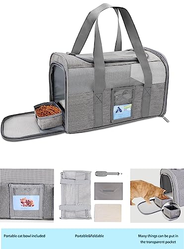 Facile da pulire: il trasportino per gatti è realizzato in tessuto Oxford 600D,che è durevole e pratico, e il cuscino interno è rimovibile e lavabile in lavatrice. Abbiamo preparato una ciotola pieghevole in modo da poter nutrire i vostri animali domestici quando siete in viaggio. Le tasche esterne possono essere utilizzate per riporre documenti medici.