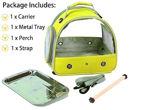 Trasportino per uccelli, trasportino portatile per pappagalli, parrocchetti, piccoli uccelli, con vassoio in acciaio inox e posatoio in legno (giallo)