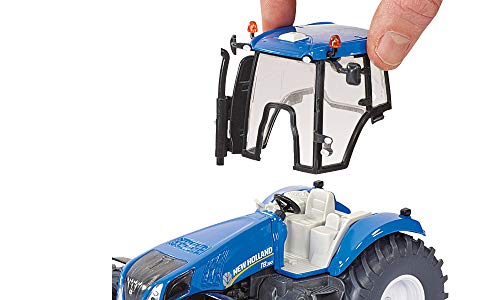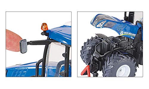 Siku 3273, Trattore New Holland T8.390, 1:32, Metallo/Plastica, Blu, Sterzatura Ackermann e gancio di traino