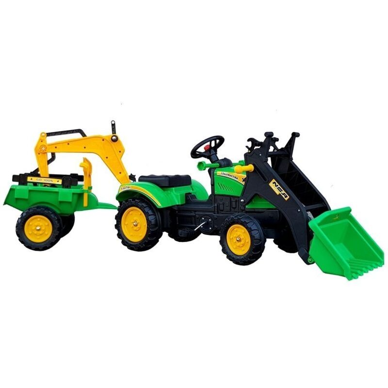 Un grande trattore con rimorchio a pedali Il trattore verde Benson diventerà il migliore amico del tuo bambino. È un aiuto fantastico per incoraggiare il tuo bambino a impegnarsi nell'attività fisica quotidiana, ma il suo utilizzo non è complicato. Il piccolo ha a disposizione un manubrio e un seggiolino, rendendo questo gioco molto più semplice e meno impegnativo che andare in bicicletta o in monopattino: basta guardare avanti e pedalare. Inoltre, grazie al fatto che la parte principale del veicolo è montata su quattro ruote larghe, il piccolo conducente non deve preoccuparsi di mantenere costantemente l'equilibrio. Cosa rende così popolare il trattore verde Benson: una moltitudine di elementi aggiuntivi: un rimorchio, un accessori per secchiello e sabbia, - peso ridotto combinato con la massima qualità di lavorazione, - design moderno + adesivi inclusi nel set, - volante ergonomico con clacson, - posizionato su ruote larghe e con battistrada, - sedile ampio e confortevole che