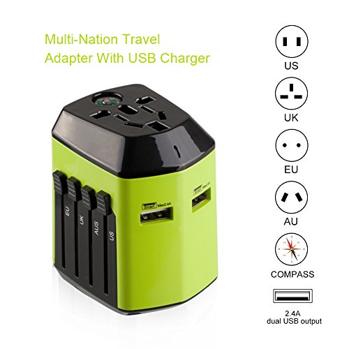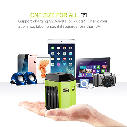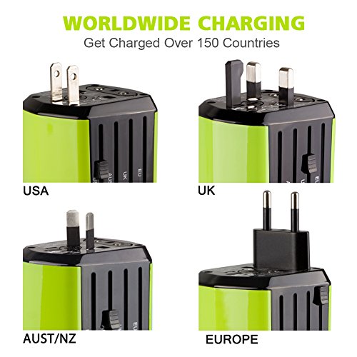 USB 3.0 Travel Adapter Universal Adattatore Universale da Viaggio Caricatore USB di 2.4A Oltre 150 Paesi che Coprono Europa, Canada, Messico, Brasile e Dispositivi Android e iOS - Milool (193green)