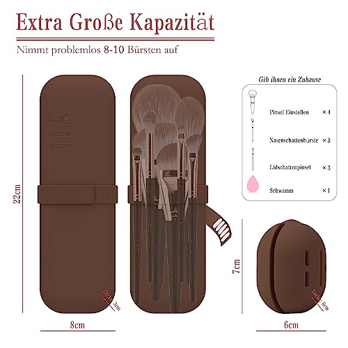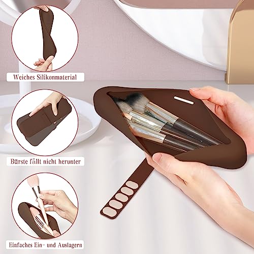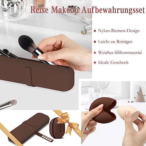 Travel Essentials - Borsa per il trucco in silicone, 1 astuccio per pennelli da trucco e 1 custodia per blender di bellezza, facile da pulire, morbida e portatile, per viaggi, marrone, Elegante
