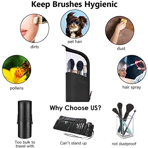 PORTABLE&DUSTPROOF: It stands on its own makeup brush holder for easy access. Fold down the top and grab the brush you need. Enclosed zippered style keep brushes hygienic and visible. Portable carrying bag ready for on-the-go travel
