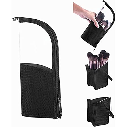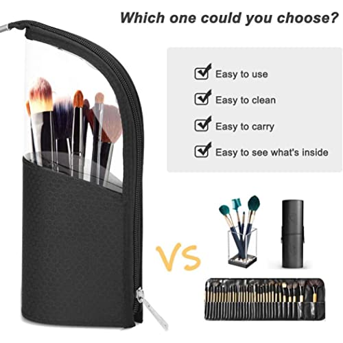 Travel Makeup Brush Holder Organizer Bag, Clear Plastic Oxford Cosmetic Zippered Case, Stand-Up Makeup Brush Pouch, Professional Artist Small Toiletry Black Cosmetic Organisers