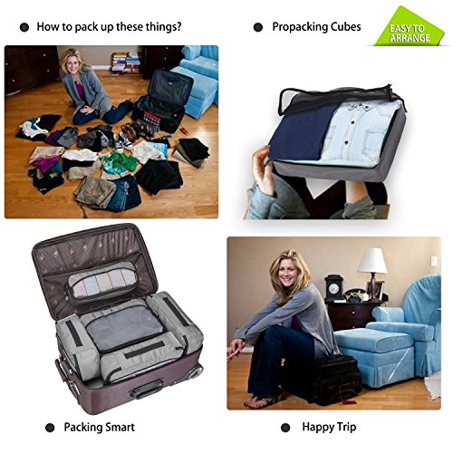 Zomake, accessori da viaggio (grigio), Bambino ragazza Uomo donna, Packing Cubes Set(6 Piece), Grey