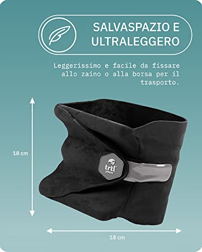 Trtl Travel Pillow Nero | Cuscino da viaggio salvaspazio | Per viaggiare comodamente in aereo, auto e autobus | Sistema di supporto unico | Lavabile in lavatrice