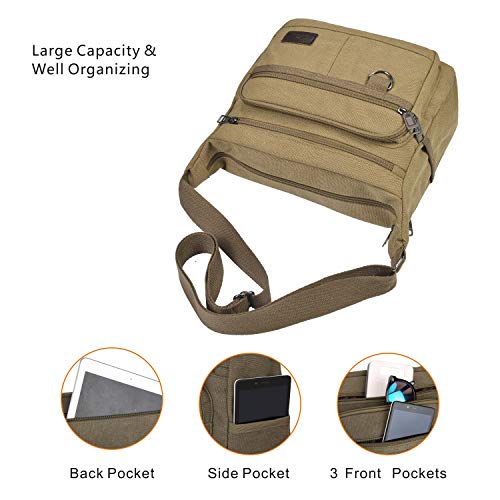W&G traveler Borse Messenger in tela, borsa valigetta Portatile Computer, Borsetta Corriere Commuter per 13,3 pollici Macbook Pro Air, 12.9 pollici iPad Pro, cachi