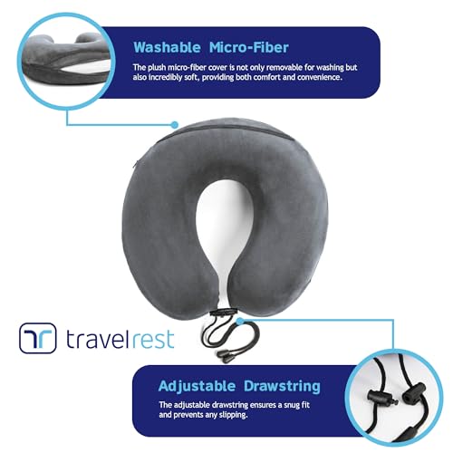 Travelrest Cuscino da Viaggio in Memory Foam Terapeutico Sfoderabile con Zip Lavabile Ergonomico Brevettato - Per Viaggio in Aereo, Auto, Treno, Pullman - Da Attaccare al Bagaglio