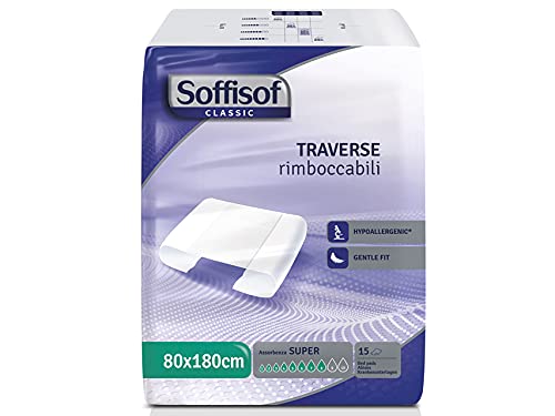 Traversa assorbente, 80x180 cm, confezione da 90 pezzi (6 buste da 15), ideale per letti, per anziani, per animali