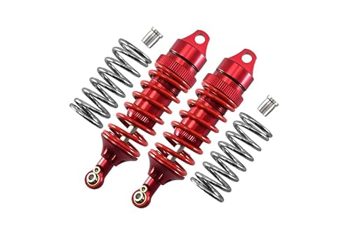 Made from quality light weight high tensile strength Aluminium 6061T6 for greater strength and stability. Oil pre-filled and tightly sealed to prevent leaking. Shock shaft is thickened from 3.5mm (original) to 5mm and smoothly polished to achieve higher durability. Spring coil is from 2.1mm (original) to 2.2mm. Extra set of 2.6mm gold spring is provided.