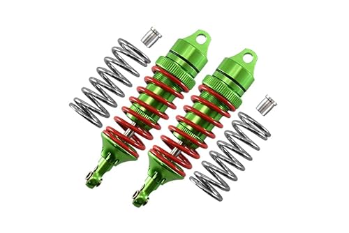 Made from quality light weight high tensile strength Aluminium 6061T6 for greater strength and stability. Oil pre-filled and tightly sealed to prevent leaking. Shock shaft is thickened from 3.5mm (original) to 5mm and smoothly polished to achieve higher durability. Spring coil is from 2.1mm (original) to 2.2mm. Extra set of 2.6mm gold spring is provided.