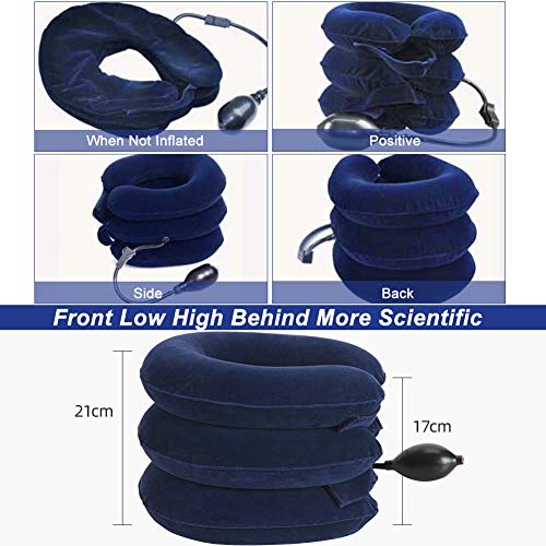 ❀Massimo comfort:Il nostro dispositivo di trazione del collo ha 3 camere d'aria, puoi aprire il supporto del collo o sgonfiare per regolare la pressione. Puoi controllare la quantità di aria per una colonna vertebrale confortevole che allunga il collo e le spalle. La potente chiusura in velcro assicura che il dispositivo si adatti perfettamente al collo e impedisce che scivoli verso il basso.