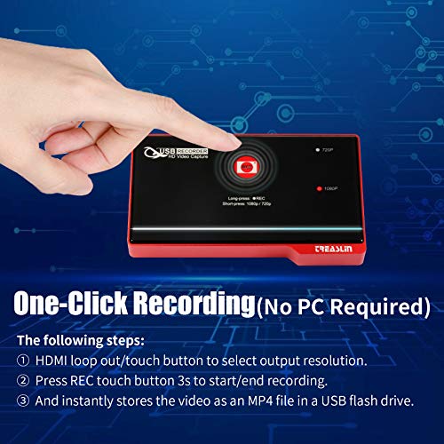 Registratore HDMI da 1080P a USB. Il registratore HDMI può registrare con un semplice clic, console di gioco, TV Box, webcam, videoregistratore, PC, lettore DVD, DVR, lettore blu in 1080P e memorizzare i file MP4 su un'unità flash USB. Questa scheda di acquisizione non supporta streaming live e non richiede PC per funzionare.